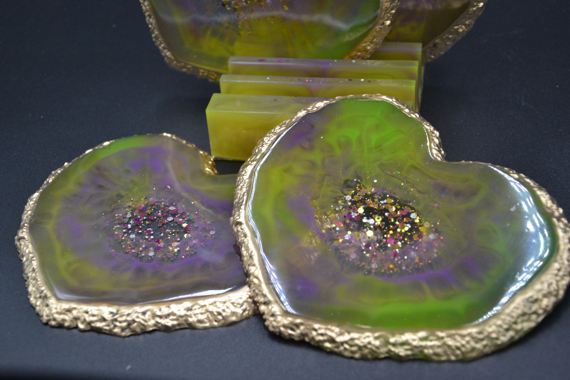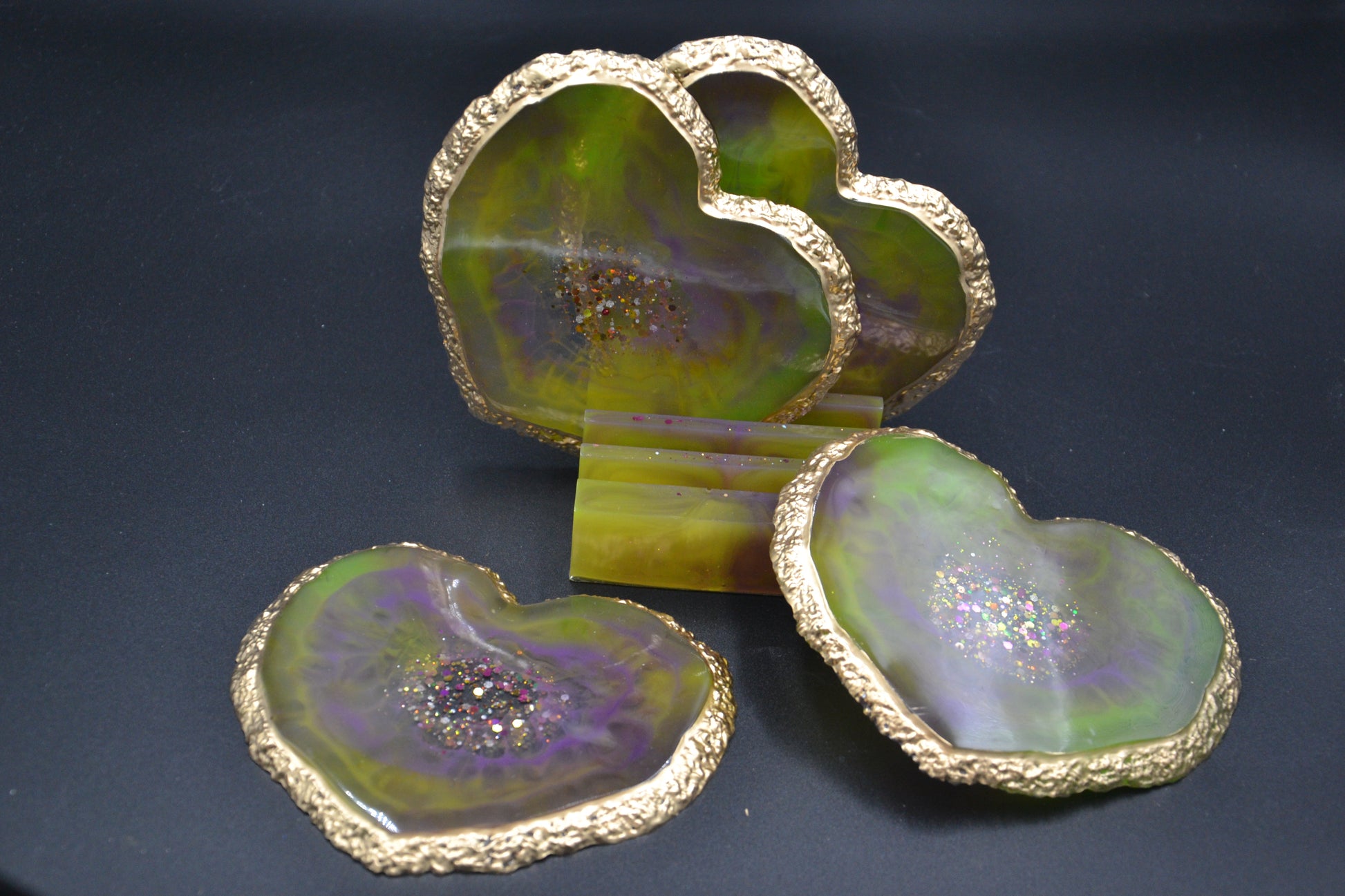 Epoxy pohár alátét készlet tartóval (sárga)