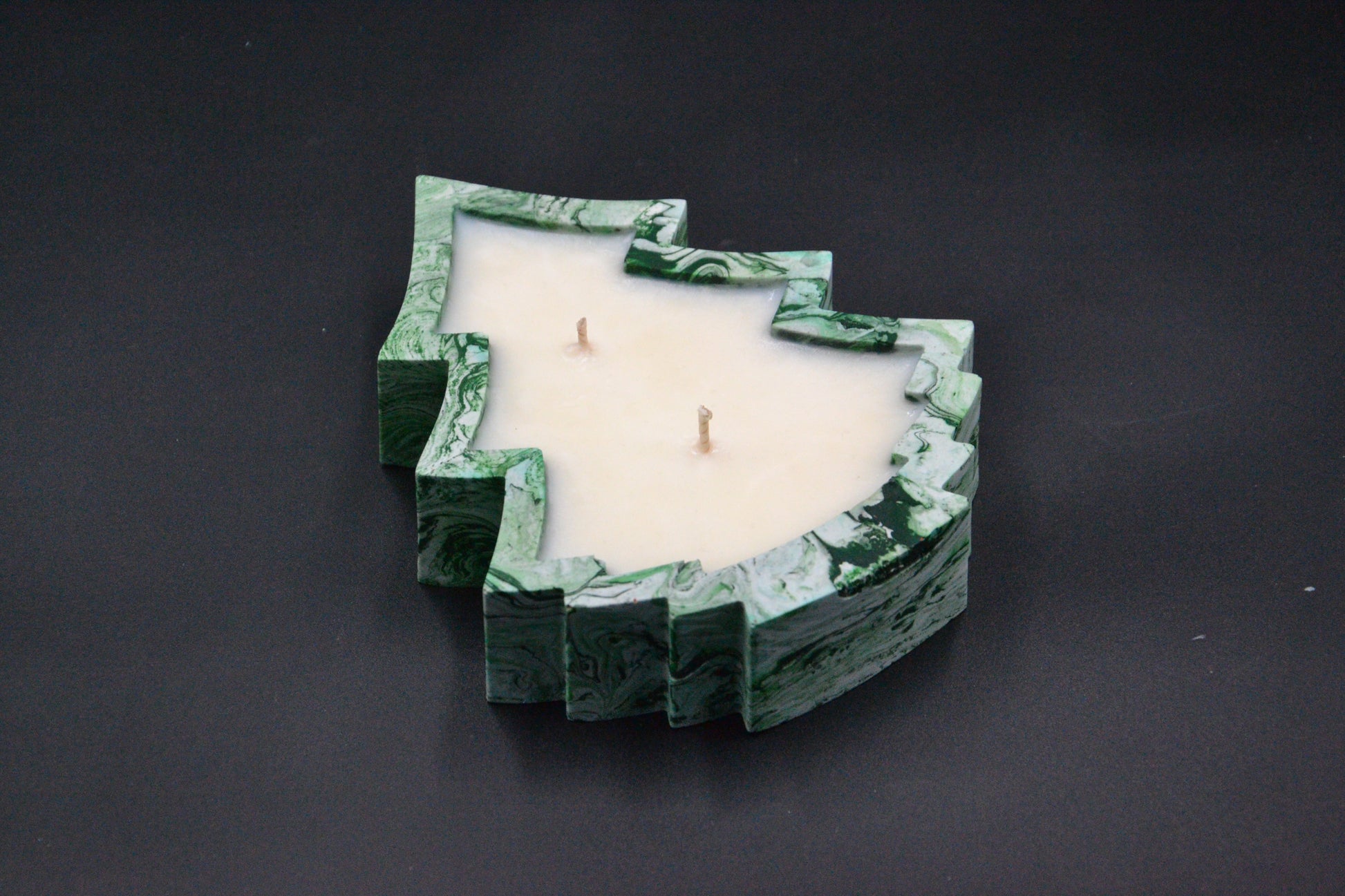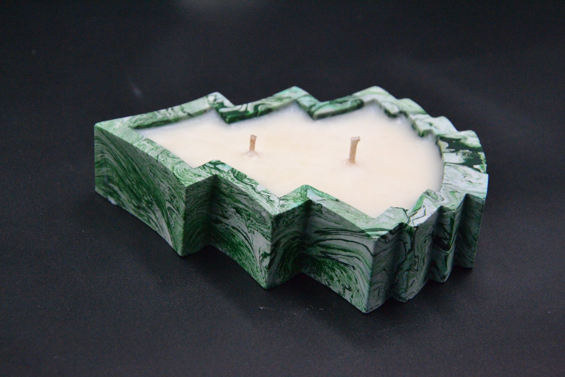 - Kézzel öntött ásványgyanta (epoxi) tartó, malachit mintázattal