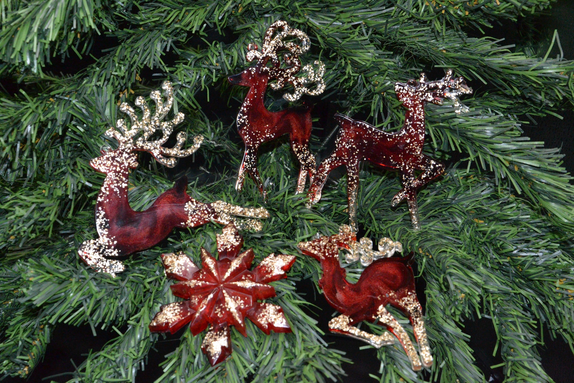 Karácsonyi varázs - kézműves epoxy díszek (piros - arany)
