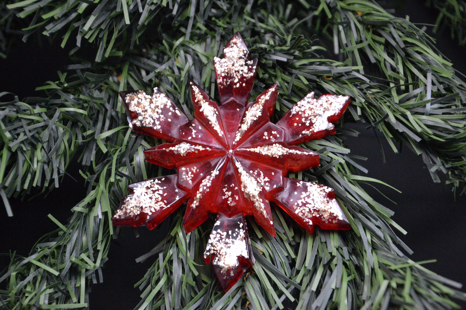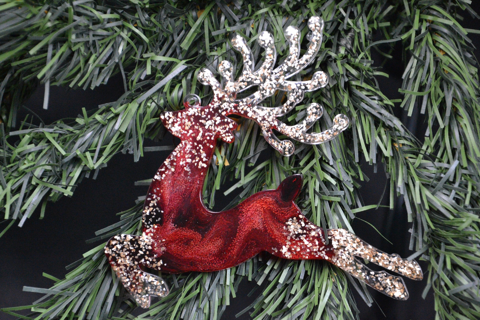 A karácsony melege és ragyogása kel életre ezekben a kézzel készült, piros-arany epoxi díszekben. A mély rubinvörös és az aranyló csillám finoman örvénylő mintái olyan hatást keltenek, mintha a téli fény tükröződne bennük.