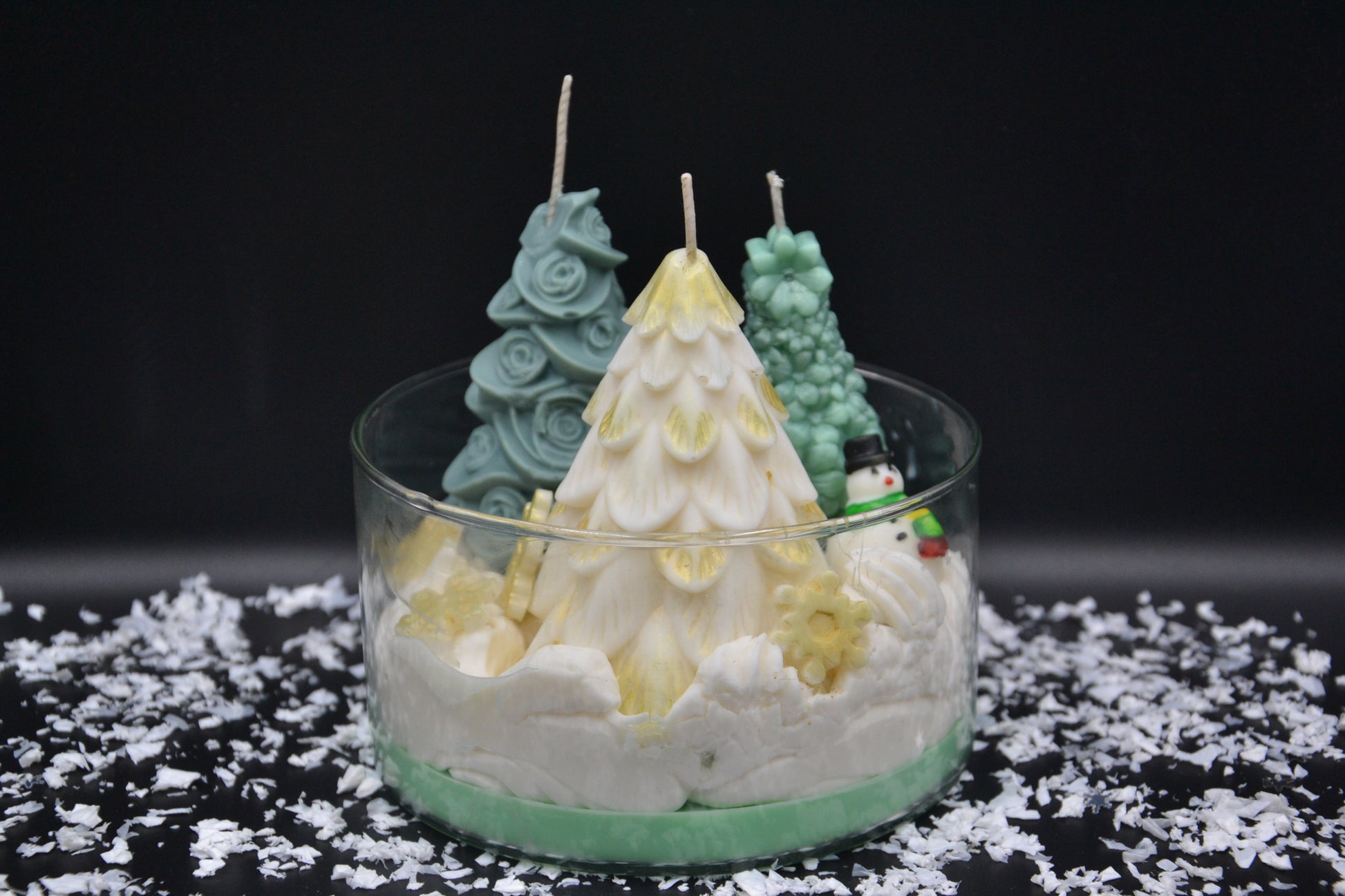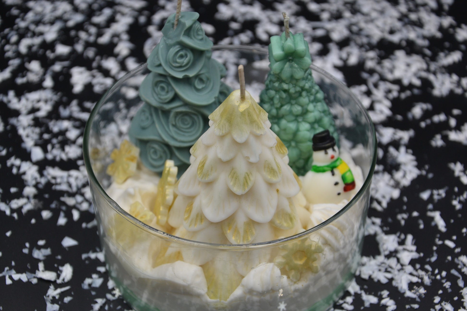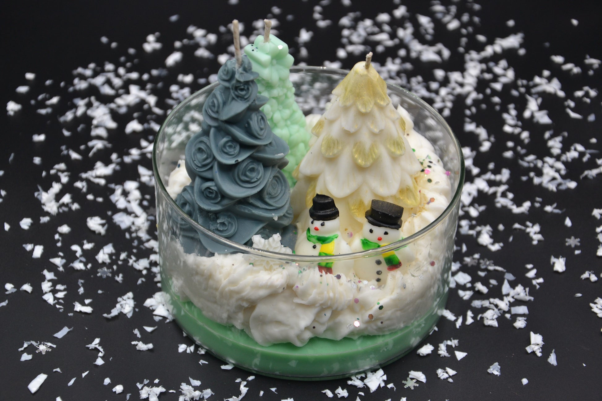 A Havas Erdő Mesetál egy varázslatos, téli dioráma gyertya, amely egy mesekönyvbe illő, hóborította erdei jelenetet kelt életre. Kézzel öntött fenyők különböző formákkal és színekkel, aprólékosan megmintázott hóemberkék, valamint puha, habos hófelület alkotják ezt a meghitt, ünnepi kompozíciót. A finom csillogások és a rétegezett viaszalap még inkább kiemelik a tél csodáját.