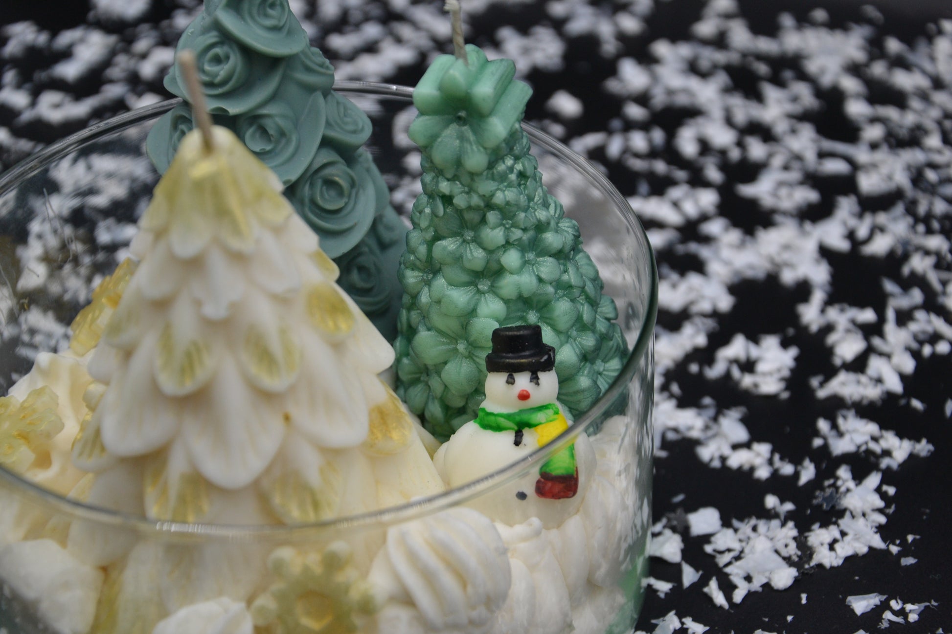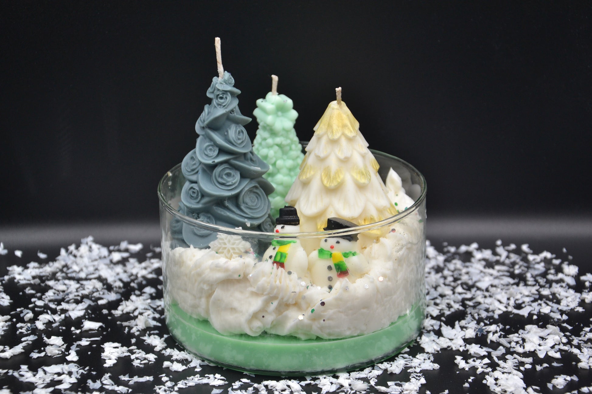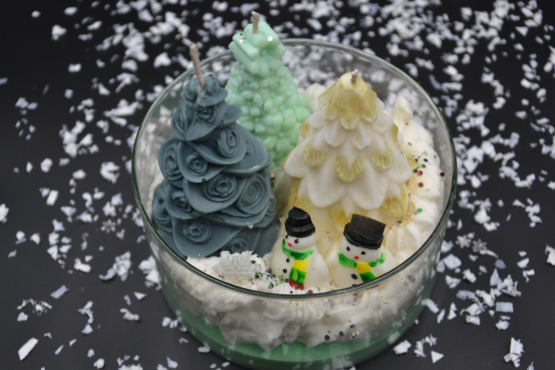 A Havas Erdő Mesetál egy varázslatos, téli dioráma gyertya, amely egy mesekönyvbe illő, hóborította erdei jelenetet kelt életre. Kézzel öntött fenyők különböző formákkal és színekkel, aprólékosan megmintázott hóemberkék, valamint puha, habos hófelület alkotják ezt a meghitt, ünnepi kompozíciót. A finom csillogások és a rétegezett viaszalap még inkább kiemelik a tél csodáját.
