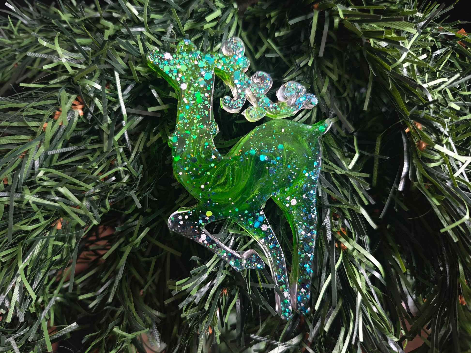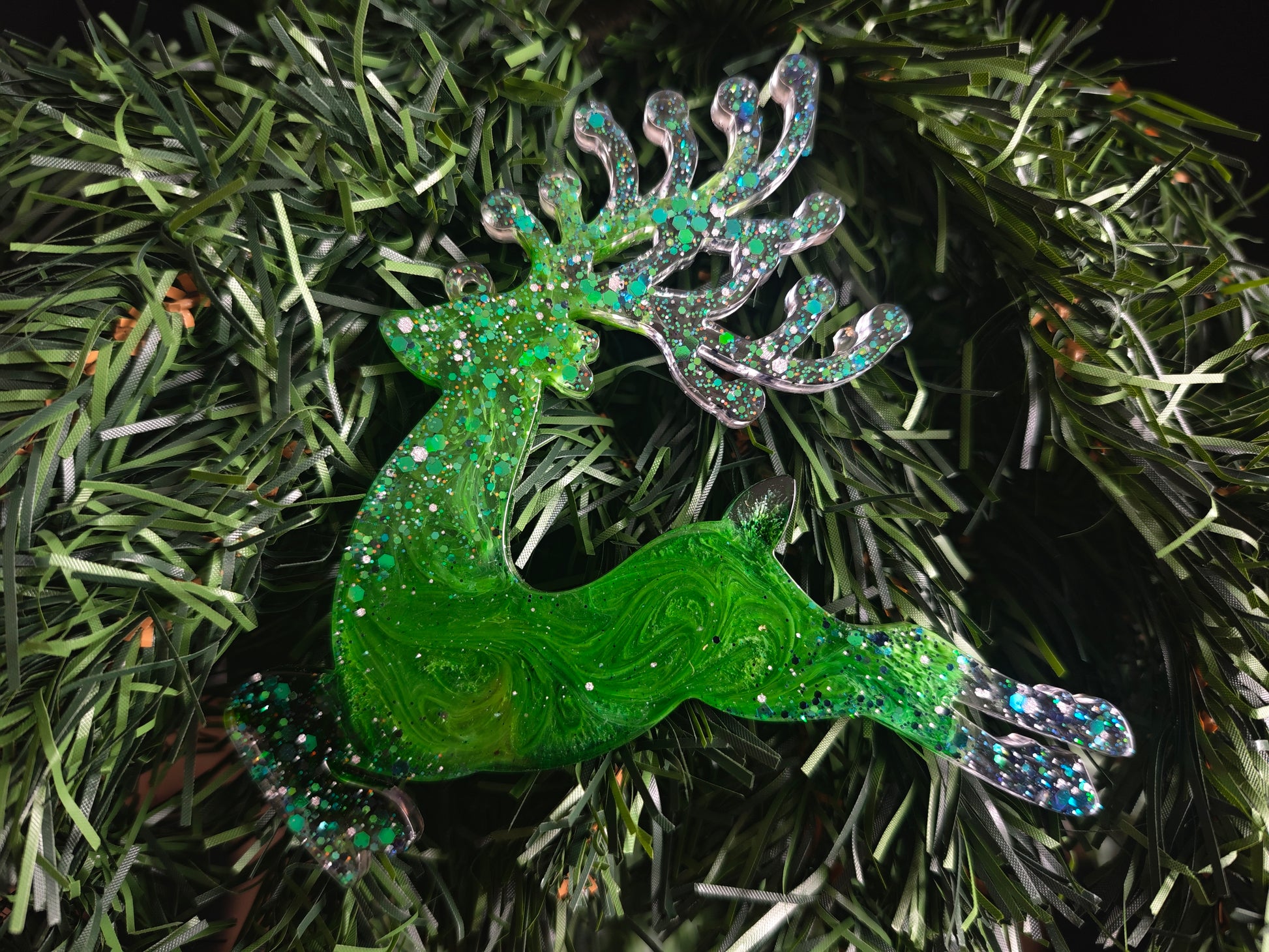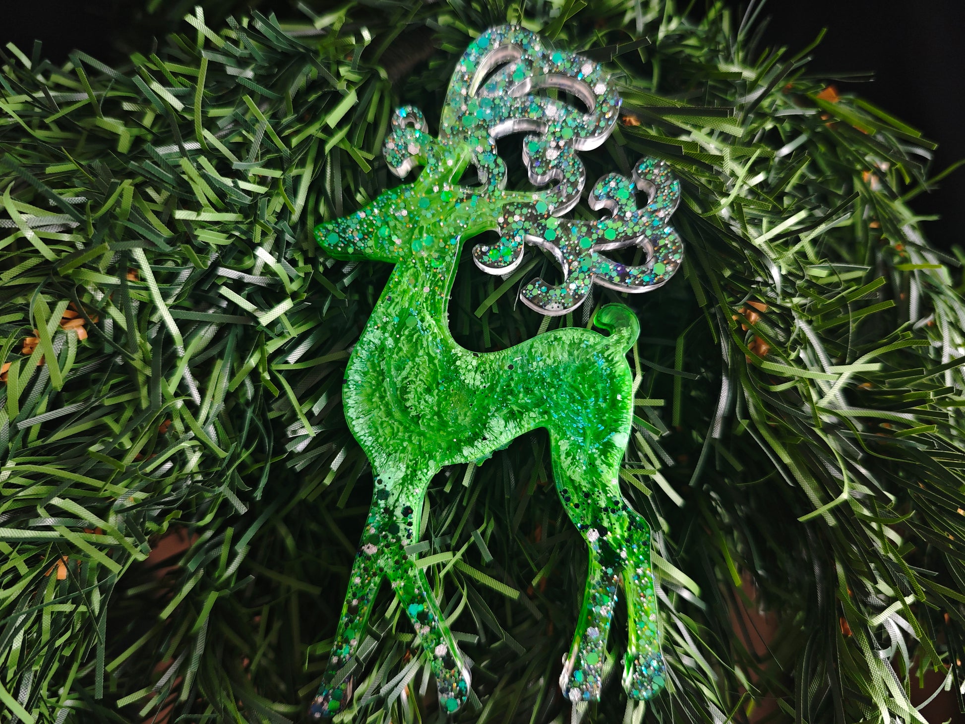 A téli erdők mélyzöld árnyalata és a csillogó ezüst fény találkozik ezekben a kézzel készült epoxi díszekben. A mozdulatban megfagyott szarvasok és a csillámló hópelyhek a természet békéjét és az ünnep varázsát hozzák el otthonodba.
