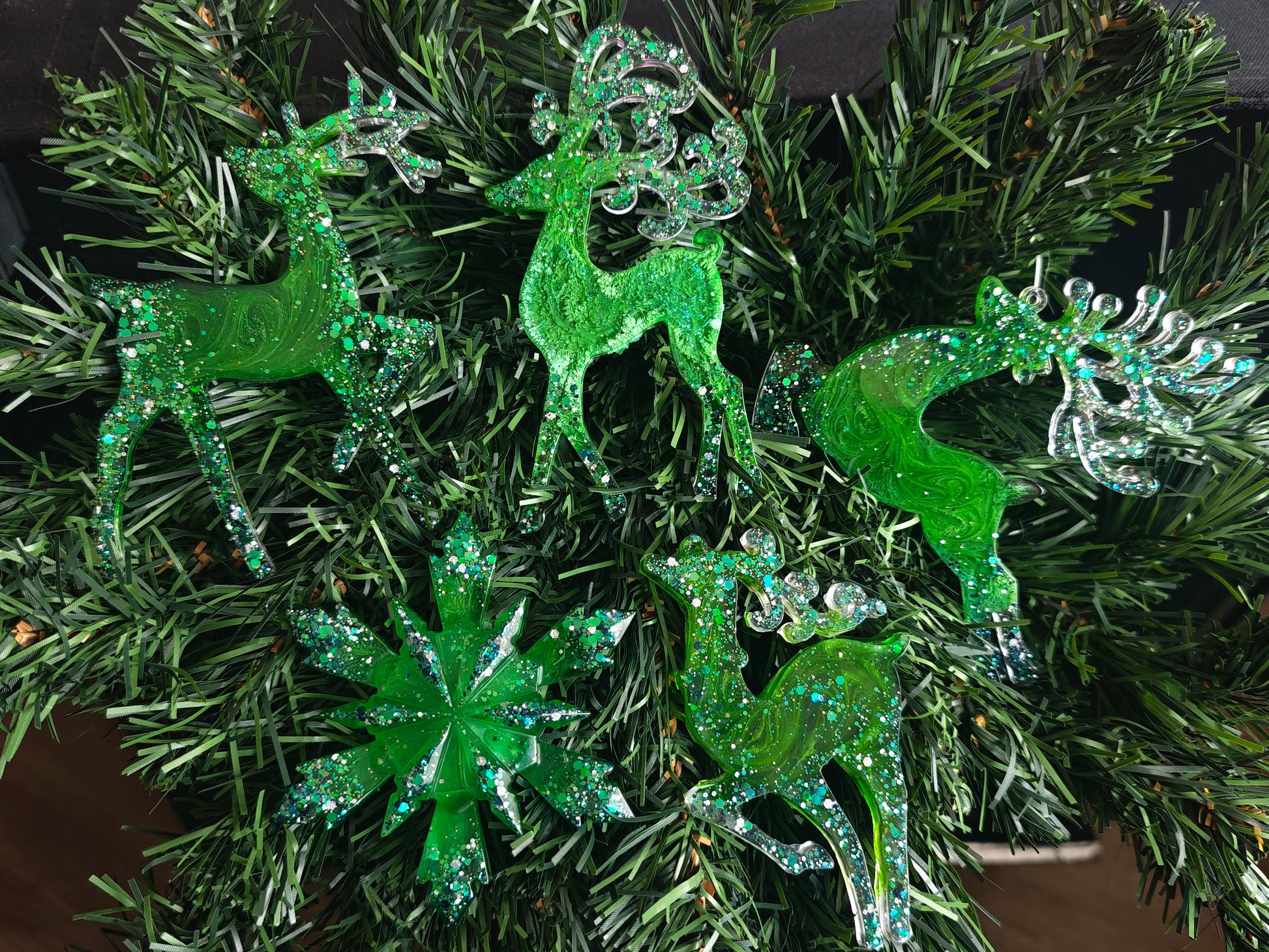 Erdei varázs epoxi karácsonyfadíszek (zöld-ezüst)