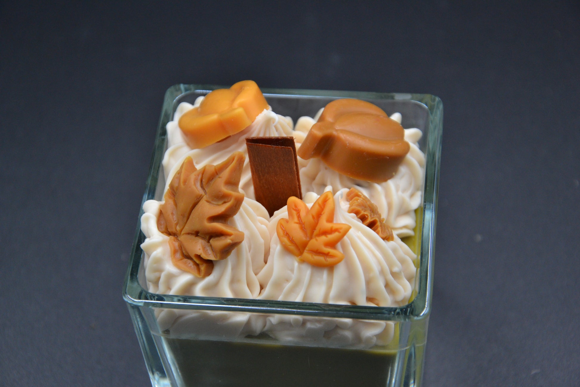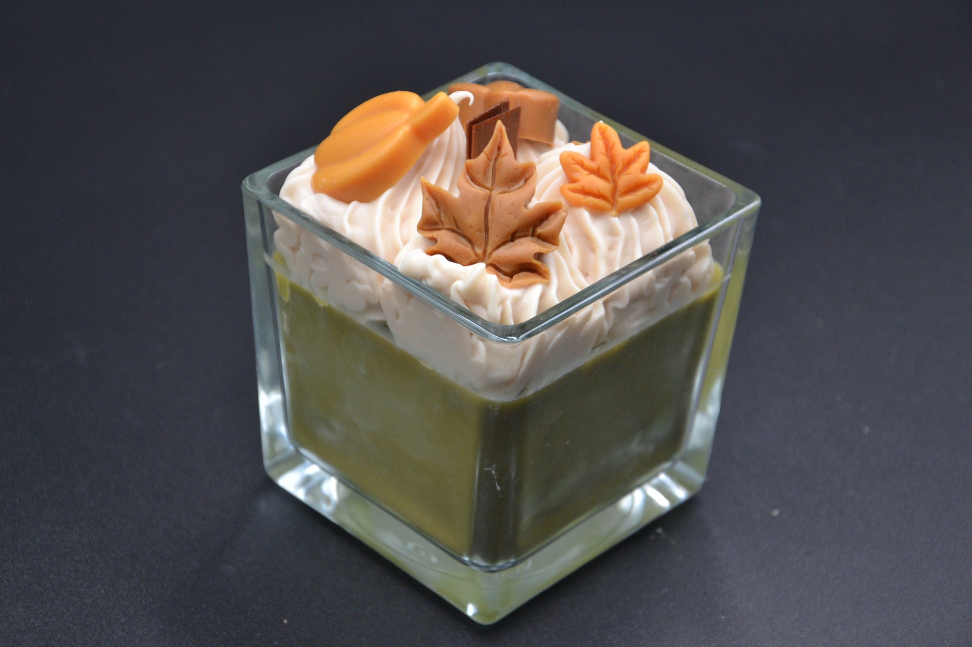 Kézzel készült, természetes szójaviasz gyertya átlátszó üvegtálban, apró tökökkel, levelekkel, csokoládéval és fahéjrúddal díszítve. Meleg sütőtök–fahéj–vanília illata betölti a teret, és meghitt, otthonos őszi hangulatot teremt.