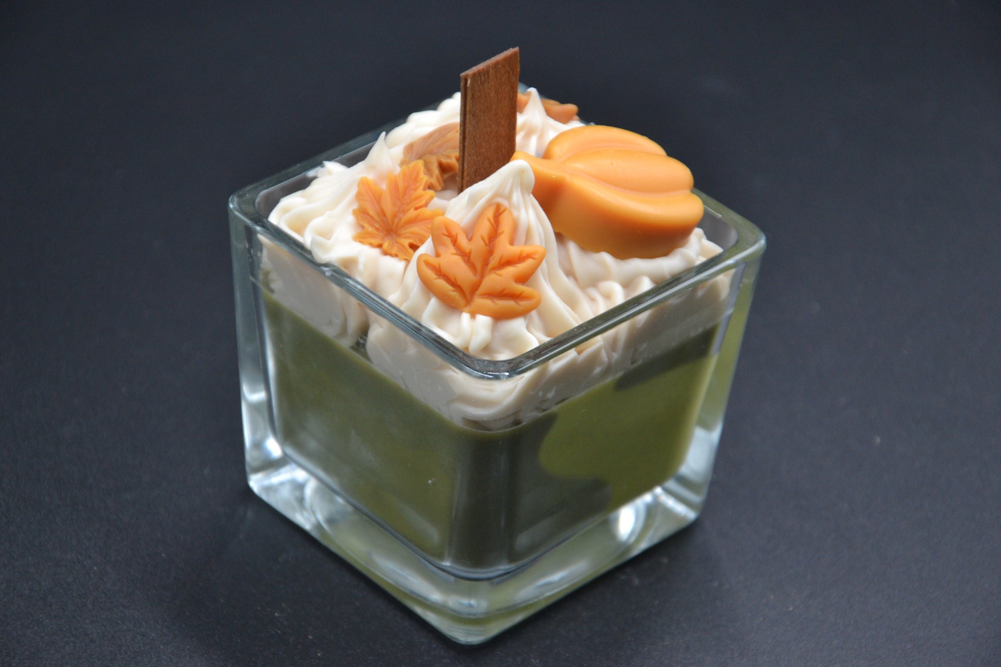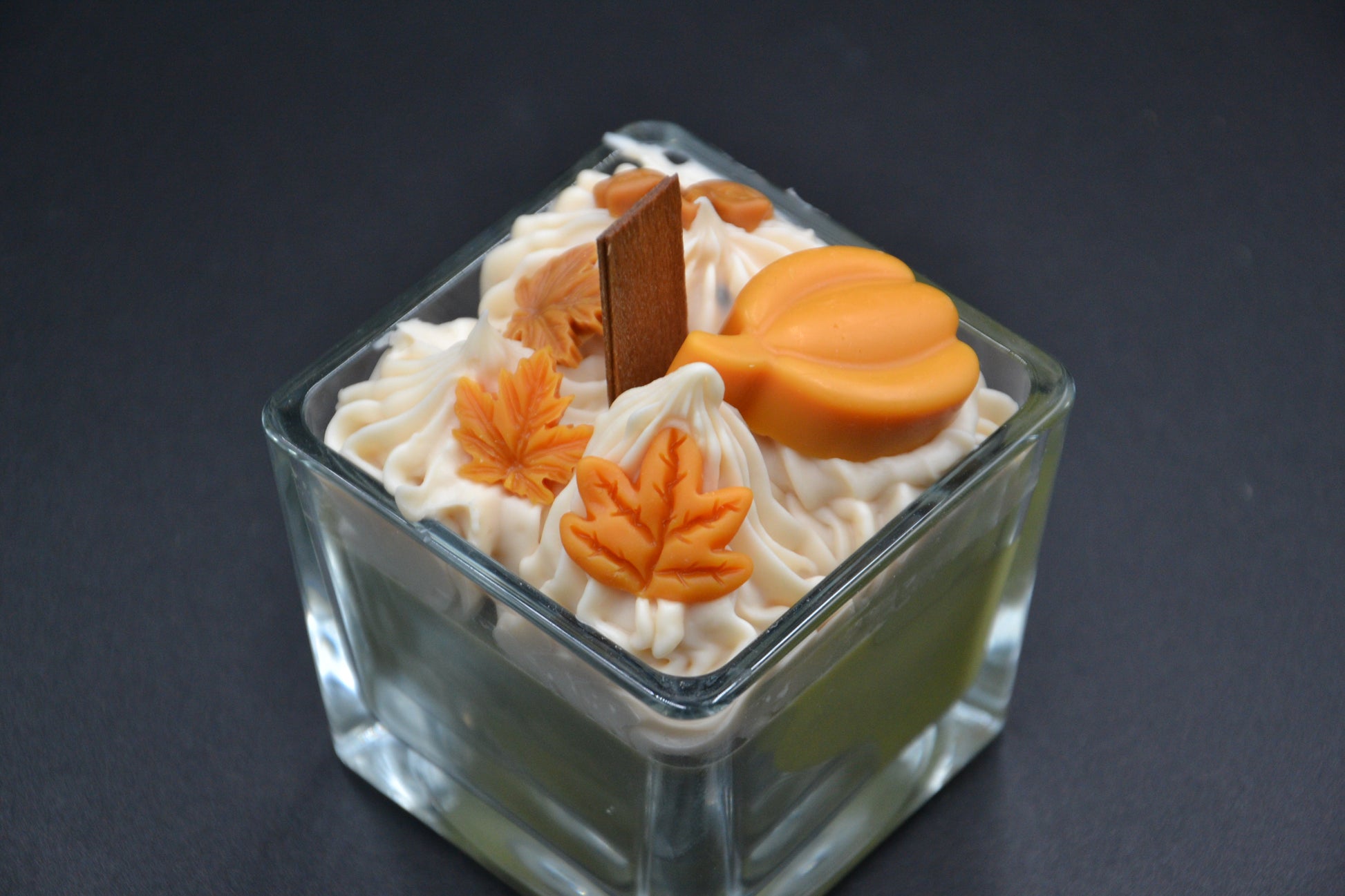 Kézzel készült, természetes szójaviasz gyertya átlátszó üvegtálban, apró tökökkel, levelekkel, csokoládéval és fahéjrúddal díszítve. Meleg sütőtök–fahéj–vanília illata betölti a teret, és meghitt, otthonos őszi hangulatot teremt.